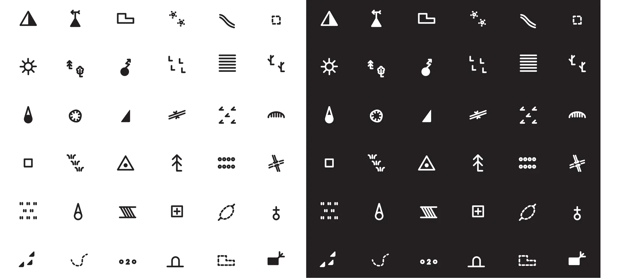 Фирменный паттерн из стилизованных картографических символов, намек на карту без использования самой карты