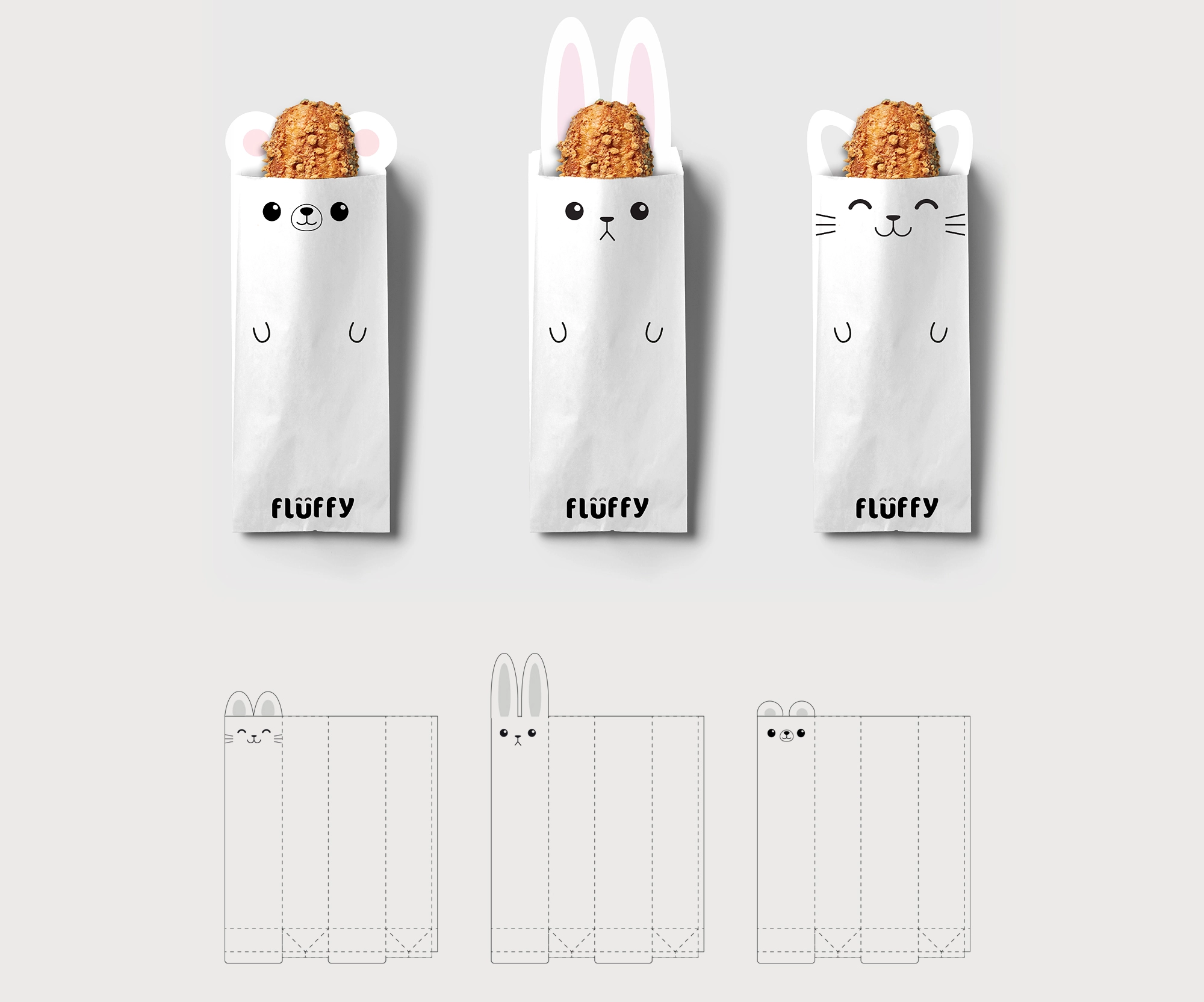 Конверт для эклера «оживает» без больших затрат – за счет вырубки и печати в один-два цвета. Таким образом, упаковка общается