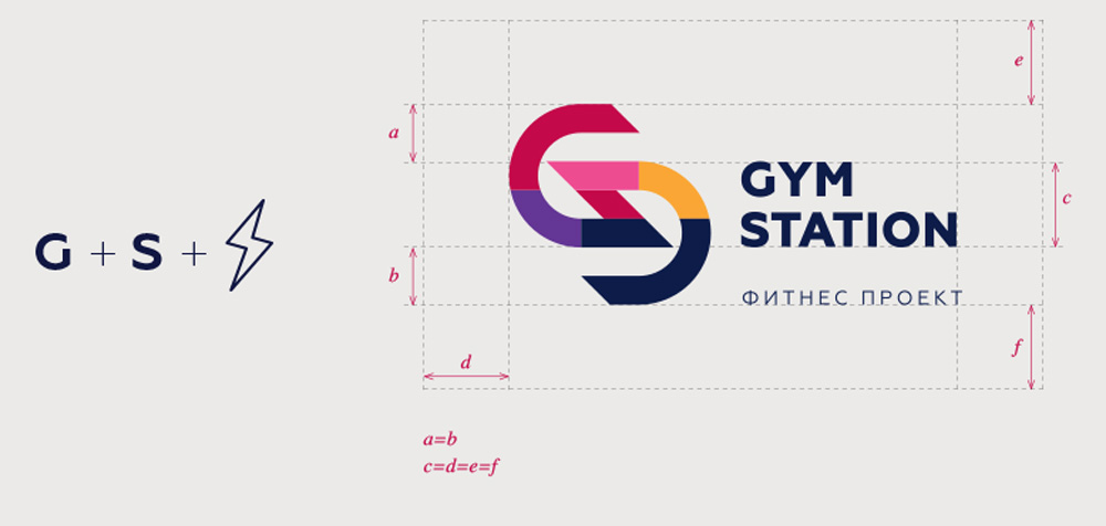 Знак бренда Gym Station® представляет собой энергичную монограму – соединение двух первых букв названия, которые при слиянии рождают молнию (заряд энергии, бодрости). В знаке сконцентрирована основная эмоциональная составляющая — он пластичен, энергичен и спортивен.